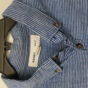 Old Navy Mens XL striped Blue Classic Button Down short Sleeved