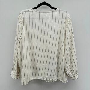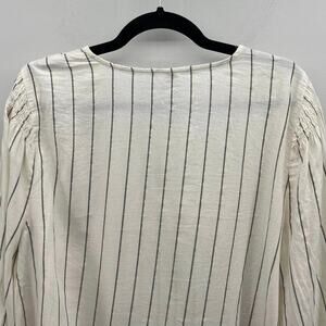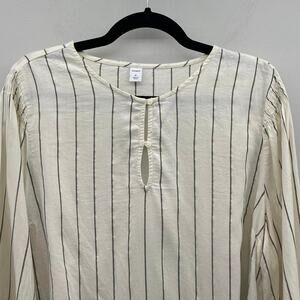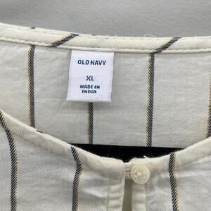 Old Navy Metallic-Stripe Smocked-Shoulder Top in Cream/Black/Gold