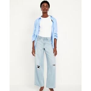 The favorite Old Navy wide leg jean. All three haven't been worn and size two is sold out online. Each pair offers that comfortable mid-rise fit and trendy wide leg silhouette you love. Perfect for creating a variety of stylish outfits, from casual everyday looks to more dressed-up ensembles.