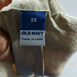 Old Navy Mid Rise Linen Blend Midi Skirt. Plus Size 3X. Tan. Side zipper. Elastic band on back of skirt. Minimalist, casual, coastal, work, travel. In nice, preowned condition. No flaws noted. Measures approximately 23" at waist, 37" waist to hem.