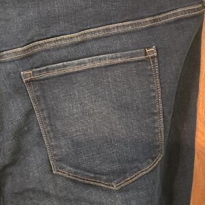 These Old Navy skinny jeans feature a deep blue hue with subtle fading around the thighs and knees, offering a stylish worn-in look.
