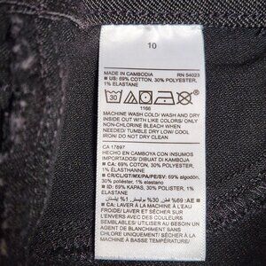 These pants are in excellent condition. Very clean, well cared for. Stretchy for comfort. No distressing, no whiskers. Great basic for any wardrobe.