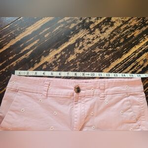Adorable, summery shorts from Old Navy. They're a beautiful soft pink with small white daisies stitched all over. Size 6 (see pictures for messurements). Super comfy and perfect mid rise length.