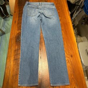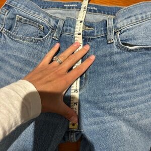 Old Navy jeans in a women's size 4. These are called the "WOW Boyfriend Mid-Rise" and and just that--classic boyfriend cut, a tiny bit of stretch for comfort, and and easy-wearing mid-rise. Lightly worn with plenty of life left!