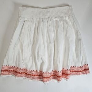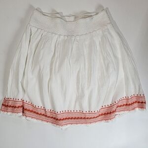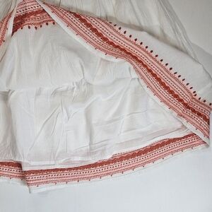 Old Navy Midi Skirt Women's Medium White Red Orange Embroidered Hem Southwestern