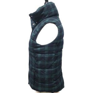 Old Navy Midnight Navy Blue & Green Tartan Plaid Thick Puffer Vest Womens Size X