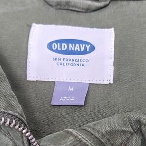 Keywords: Old Navy jacket, military jacket, utility jacket, drawstring waist, olive green coat, womens jacket, casual jacket, fall jacket, outerwear, coat, size M, medium jacket, zip up jacket, pockets, custom jacket