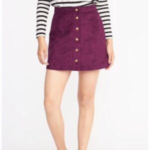 Add some preppy flair to your wardrobe with this Old Navy mini skirt. The rich wine color and faux suede fabric give off a retro vibe that's perfect for a bohemian or casual look. The snap front buttons and high rise waistline add a touch of city chic to this A-line style.