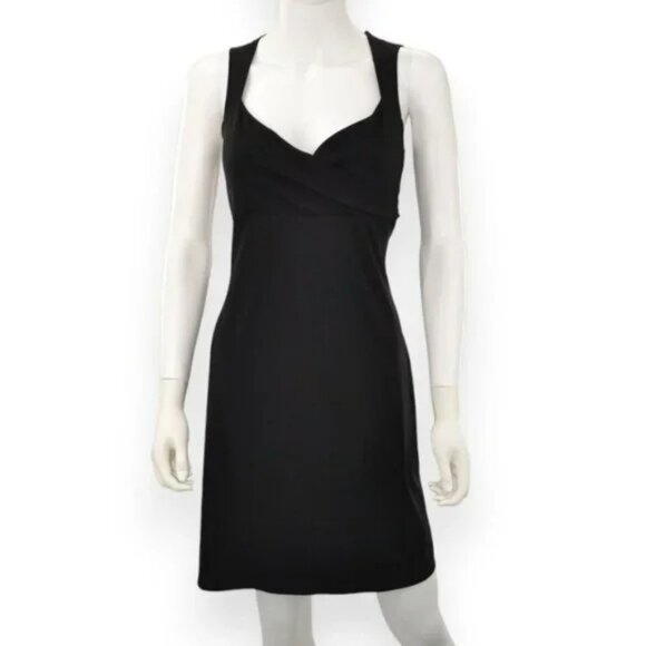 A fabulous new without tags stretchy and comfy Little Black Dress, perfect for office to cocktails. Classic babydoll crossbody sweetheart bust and empire waist with slight fit & flare profile.