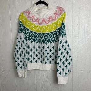 Old Navy Mock Neck Fair Isle Cropped Sweater Multicolor Mock Neck Size Medium