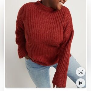 Old Navy Mock Neck Tunic Sweater Size Small Rust Dark Orange Shaker Knit