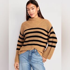 Old Navy Mock-Neck Tunic Sweater Knot Tan and Black Stripe XS