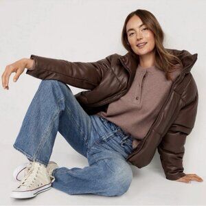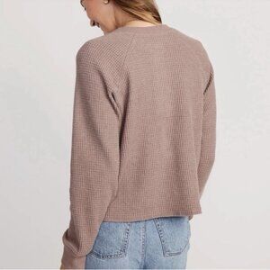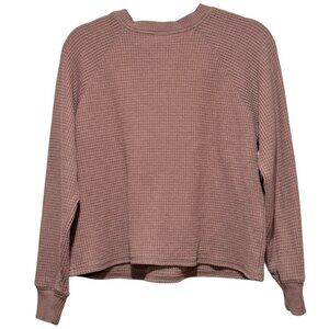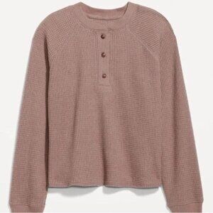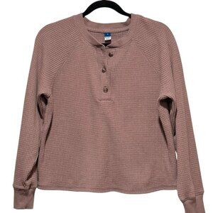 Old Navy Mushroom Brown Henley Thermal Waffle Cropped Shirt Womens Medium