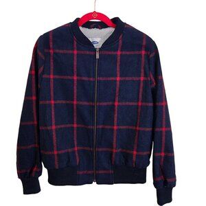 Old Navy NWT Blue Red Windowpane Plaid Wool Blend Zip Up Bomber Jacket Size M