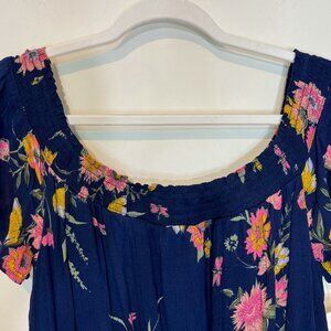 Old Navy NWT Dress Size L Blue Floral Tiered Flowy Short Sleeve Midi Large
