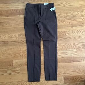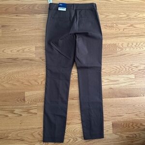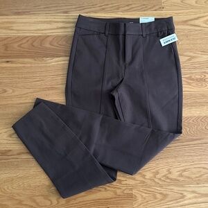 Brand new with tags! Old Navy High-Rise Pixie Trouser. Split-Hem. Full-Length. Secret-Smooth Pockets. Never-Fade. Color is Annie Brown. Zipper fly. Hook-and-Eye with Hidden Button closure. 55% cotton/37% Viscose/8% Elastane. Smooth front. 2 front pockets and 2 faux back pockets. The inseam is about 30" & the Rise is about 11." Size 6.