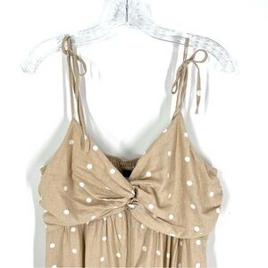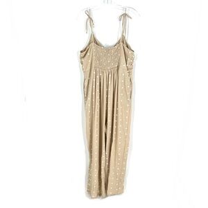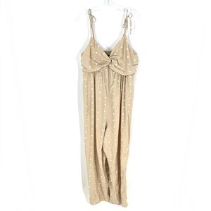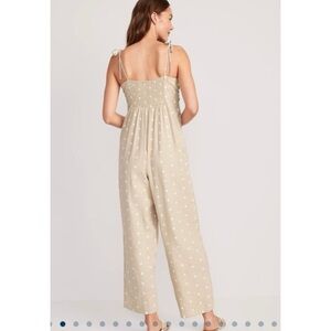 Old Navy NWT Linen Blend Tie Shoulder Jumpsuit Size L Tan Polka Dot Smocked. Condition is new with tags. No flaws. This item comes from a smoke free, pet free home.