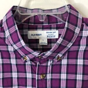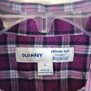 Old Navy NWT Men's Everyday Regular Fit Built-In Flex Purple Plaid Shirt Size L