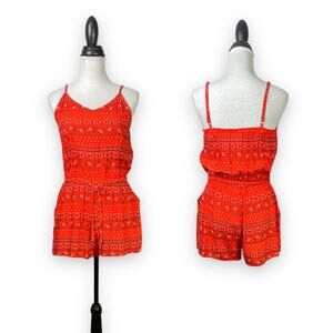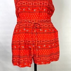 Old Navy NWT Orange Printed Tie Waist Spaghetti Strap Cami Shorts Romper