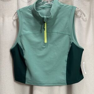 Old Navy NWT PowerSoft Half Zip Sleeveless Cropped Top green SZ L workout lift