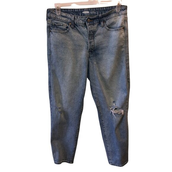 Old Navy Natalie Womens 32 OG Straight High Rise Distressed Denim Jeans