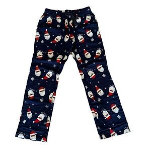 Old Navy Navy Flannel Santa Novelty Print Long Pajama Drawstring Closure S #2184