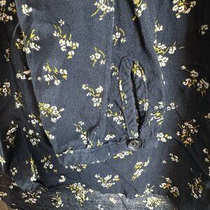 Old Navy Navy Yellow Ditsy Floral Peasant Blouse Large Boho Cottagecore