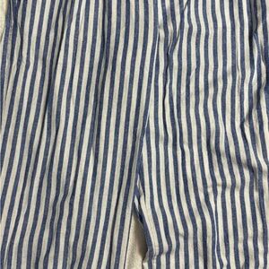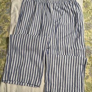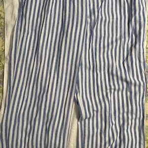Navy and white striped pants. High-rise with wide legs. Comfort waistband.
