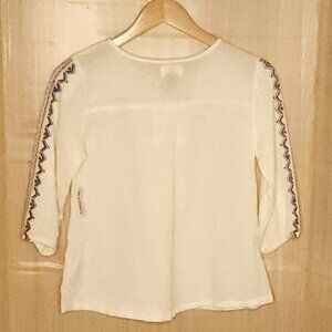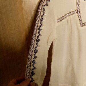 Old Navy Cream new girl’s boho embroidered loose fitting flowy top 10-12. New condition. Measurements are: 15” sleeve, 21” from shoulder to hem, and 17” from armpit to armpit.
