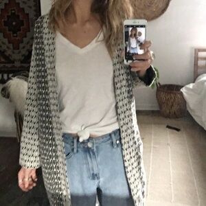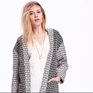 Old Navy New Size L Jacquard Textured Open Front Cardigan Jacket Black White