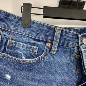 Old Navy OG Shorts Blue Denim High Rise Button Fly Distressed Cutoff