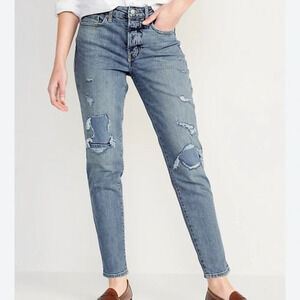 Old Navy O.G. Straight Button Fly Ripped w/ Patches Ankle Jeans. NWT. Size 6