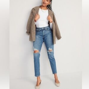 Old Navy O.G Straight High Rise Distressed Raw Hem Jeans Size Womens 12 Tall