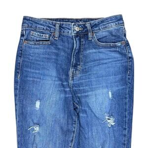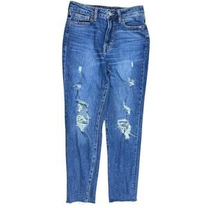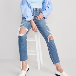 Old Navy OG Straight Jeans High Rise Ripped Distressed Raw Hem Blue Denim size 6