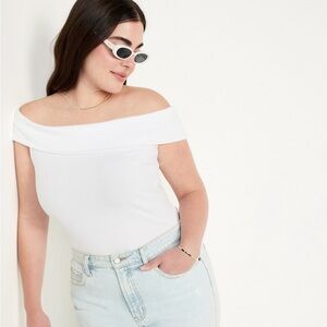 Old Navy Off-Shoulder Ribbed Top White Lilies Size 2X New