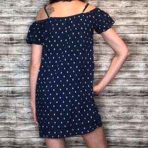 Old Navy Off-The-Shoulder Oversized Shift Dress Navy Blue White XS Extra Small