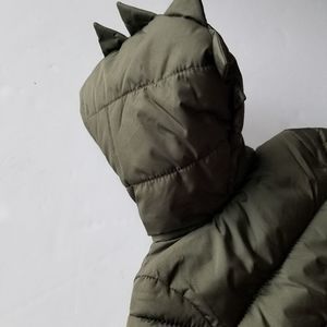 New with tags 0-3 months water resistant Baby puffer jacket with dino hoodie. Warm fleece inside to keep your little one warm with zipper and button closure to keep them extra snuggled.