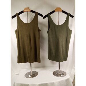 Old Navy Olive Green & Sage Green Slim Fit First Layer Tank Top Size Large