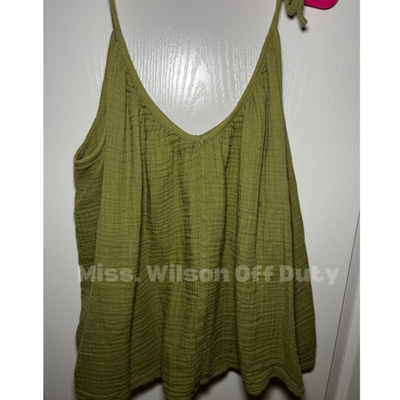 This olive green Old Navy Tie up blouse is perfect for a night out on a warm sandy beach or it can be used as a cover up for a bathing suit top.