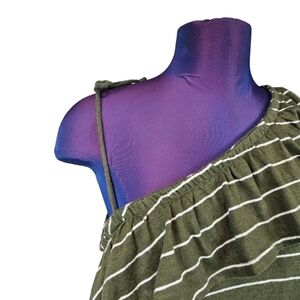 Old Navy Olive White Striped Linen Blend Ruffle One Shoulder Top Size Large Q79