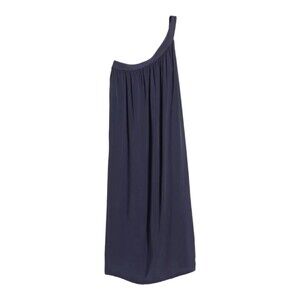 Old Navy One Shoulder Midi Dress Womens Medium Navy Pleated Rayon Bohemian