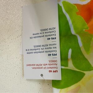 • Color/Print: Multicolor tropical leaf (orange, yellow, green on light background)