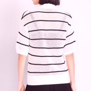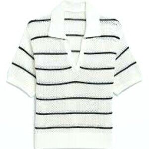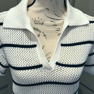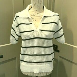 Old Navy Open Stitch Short-Sleeve Black/White Polo Sweater-SMALL-NWT