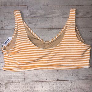 Old Navy Orange & Cream Striped Swim Top Beach Vacation V-Neck 3X & 4X Soft Material NWT! Terry Cloth Material. Has wide straps. Voop neck, a scoop back. Removable pads.