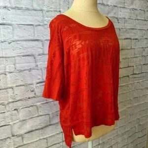 Old Navy Orange Oversized T Shirt with Burnout Aztec Tribal Print Size: Small