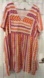 Chic midi dress with bold geometric patterns. Features vibrant orange and pink hues. Ideal for casual outings.