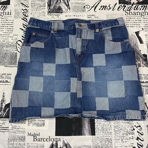 This patchwork skirt from Old Navy Outlet is super cute! It's from the early/mid 2000s/y2k. It has dark and light wash denim in a patchwork checkerboard pattern all over. It's high waisted and mini length. The pockets are functional. It doesn't have any stretch. It's in great condition with no rips, stains, or tears. Tagged as a size 16, fits smaller.