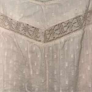 Oversized flowy fit with flutter sleeves. Crochet lace inset.