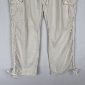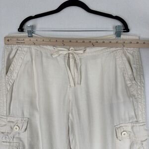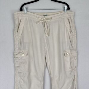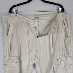 Old Navy Pants Womens 16 Ivory Straight Leg Relaxed Cargo 100% Linen Breathable
