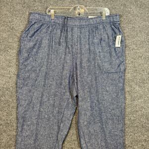 Old Navy Pants Womens 2XL Blue Tapered Leg Linen Blend Stretch Plus Size NEW
